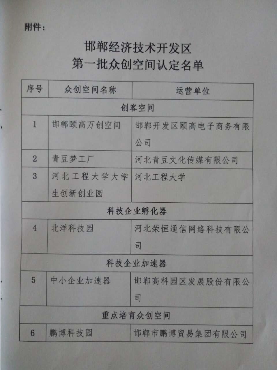 2016年12月6日,邯鄲高科園區(qū)發(fā)展股份有限公司中小企業(yè)加速器項(xiàng)目被邯鄲經(jīng)濟(jì)技術(shù)開(kāi)發(fā)區(qū)認(rèn)定為“科技企業(yè)加速器”,這對(duì)邯鄲高科來(lái)說(shuō)既是機(jī)遇又是挑戰(zhàn),邯鄲高科將借助這個(gè)平臺(tái)為更多科技型中小企業(yè)提供更全面、優(yōu)質(zhì)的創(chuàng)業(yè)服務(wù),助力中小企業(yè)茁壯成長(zhǎng)。